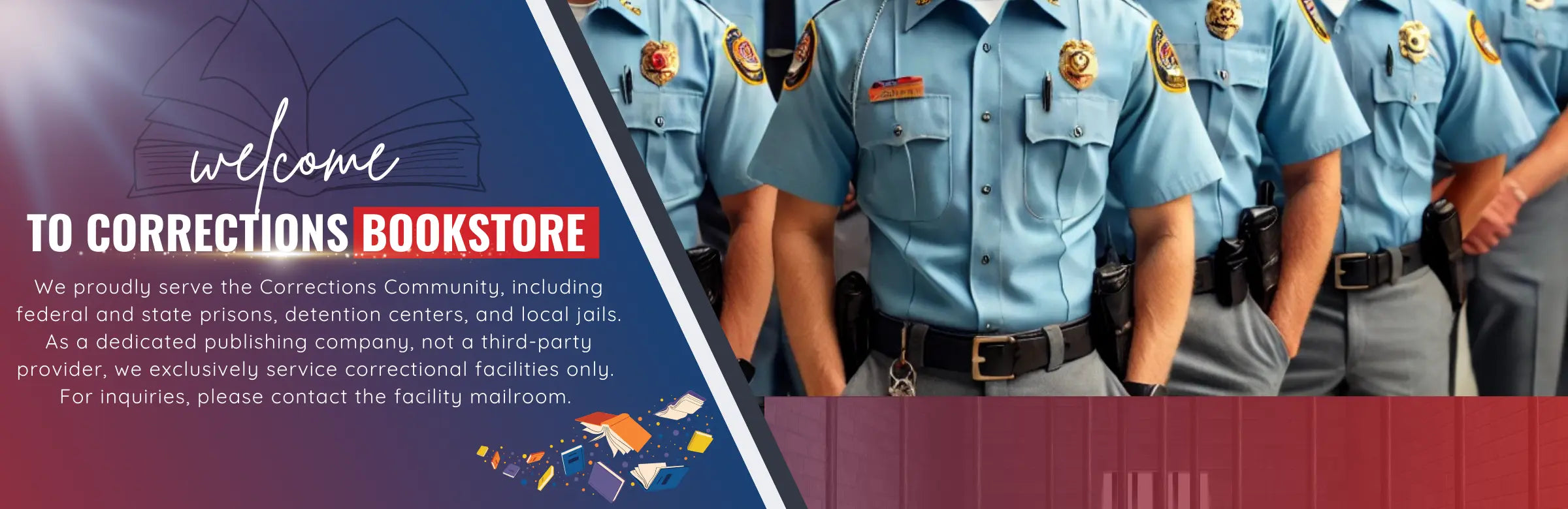 The facility accepts books from Corrections Bookstore (We are a full-service publishing company, not a third-party vendor)