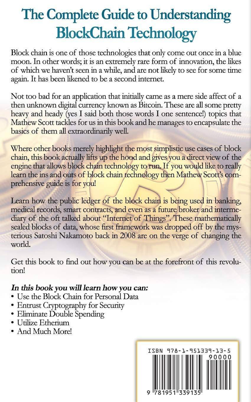 Where other books merely highlight the most simplistic use cases of block chain, this book actually lifts up the hood and gives you a direct view of the engine that allows block chain technology to run. If you would like to really learn the ins and outs of block chain technology then Mathew Scott's comprehensive guide is for you!