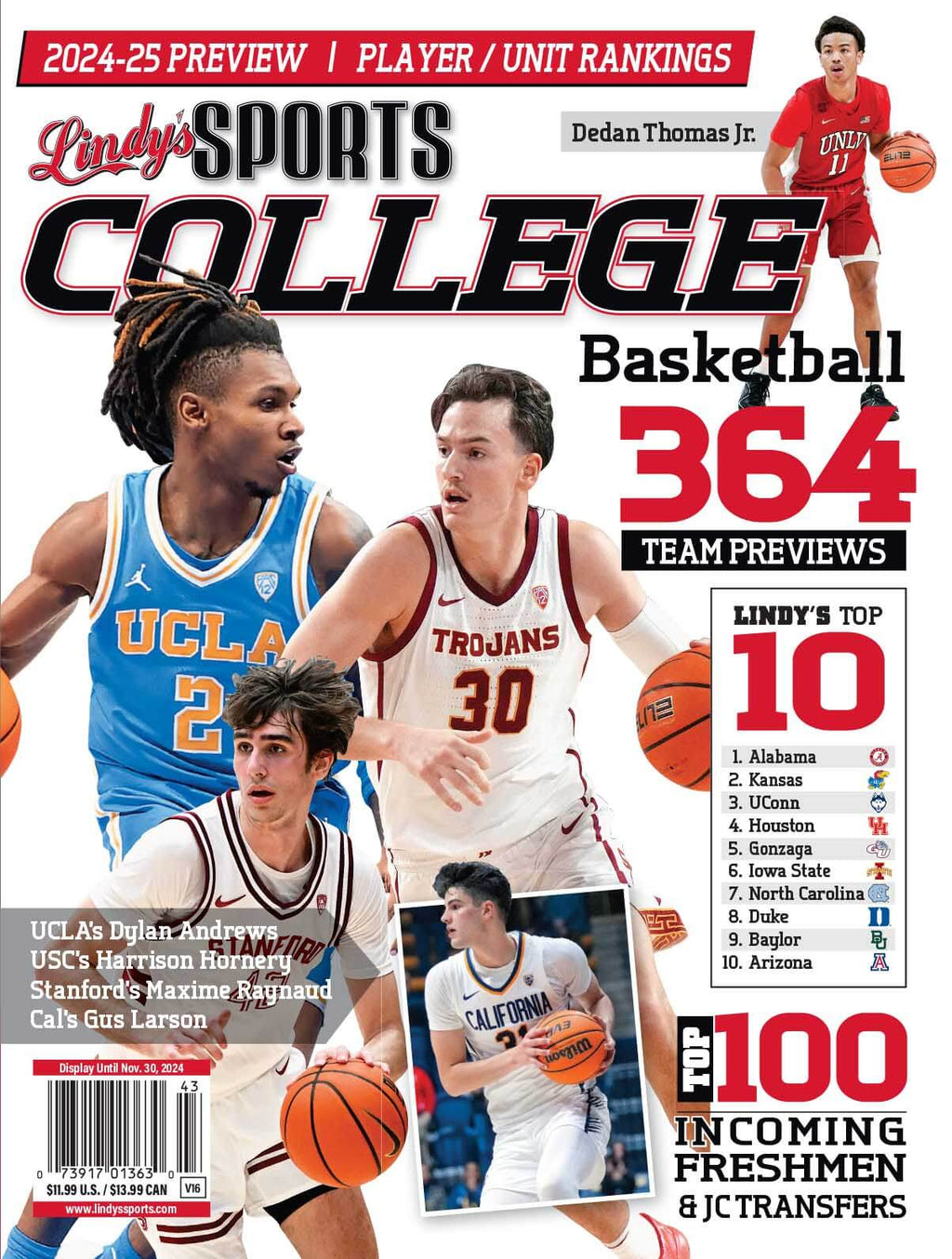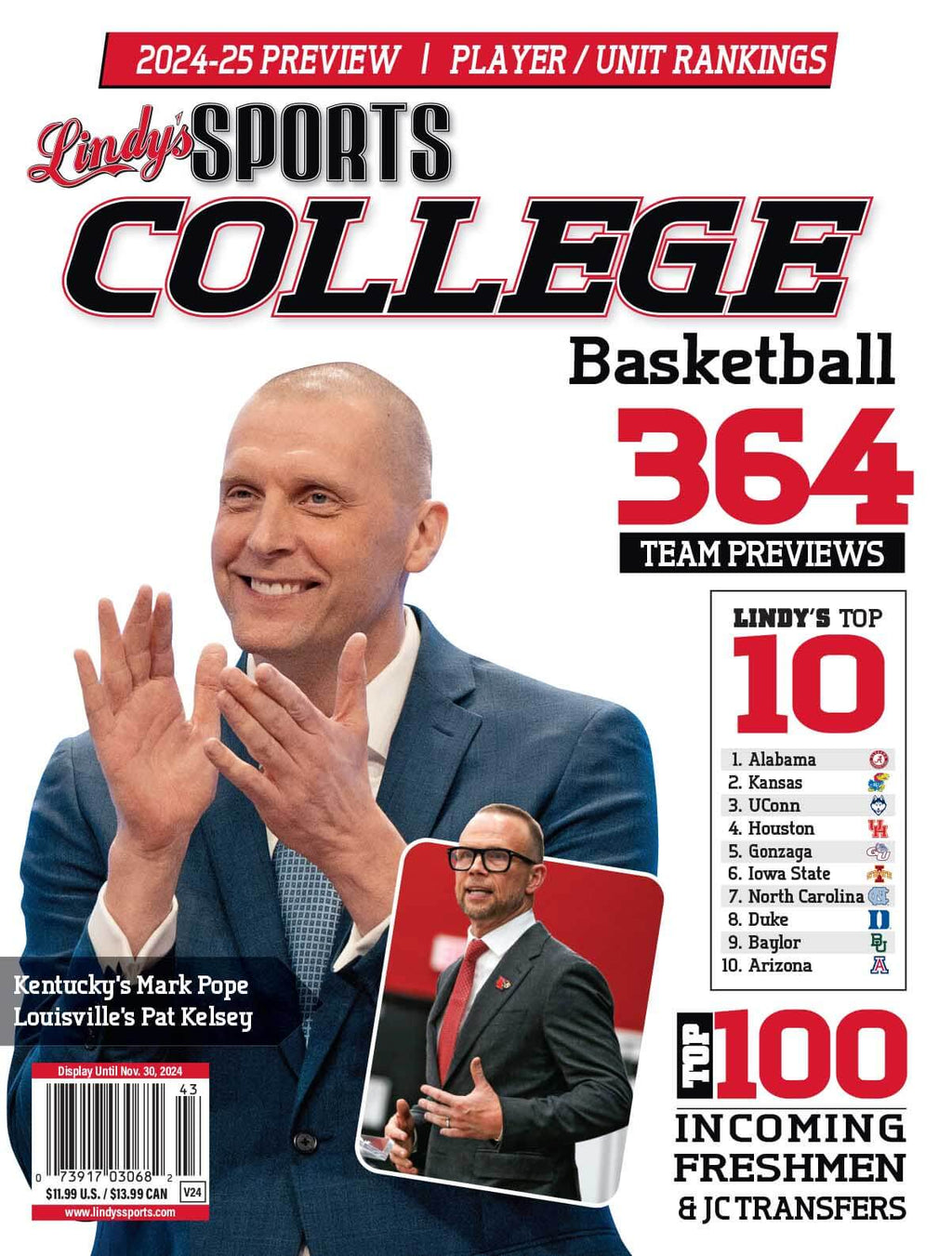Get ready for the upcoming college basketball season with Lindy's 2026-27 College Basketball Magazine! This comprehensive magazine contains over 360 team previews, rosters, and Lindy's Top 10 rankings. But that's not all - it also features the Top 100 incoming freshmen, as well as in-depth feature stories like Scoping the Nation and National Recruiting.