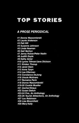 Published between 1978 and 1991, Top Stories was a prose periodical specializing in experimental writing with a collaborative, punk-feminist ethos, edited by New York-based photographer Anne Turyn (born 1954). Turyn founded the publication in Buffalo, New York, before moving the operation to Chelsea in the 1980s, where issues were produced in Chinatown, distributed by mail order and through Printed Matter, and printed in runs between 500 and 2,000. With 29 issues in total, the publication played a key historical role in the development of the group of artists and writers who helped define the "downtown" scene of the 1980s.